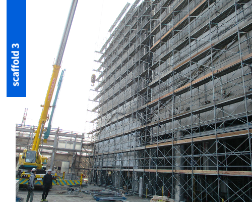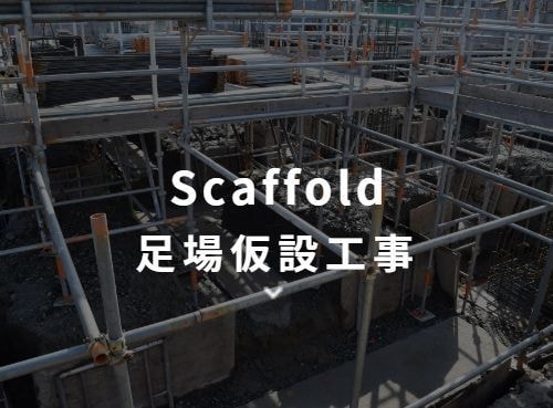工事現場などで作業する際に造る仮設の作業床、通路(足場)を組立てます。吊り足場、張出し足場または高さ5m以上の足場の組み立て/解体作業も可能です。豊富な足場材を有しているので、大規模な組立も可能です。